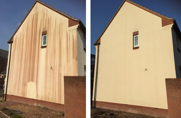 Les traces rouges sur la façade sont dues à des champignons. Nous les supprimons avec nos traitements de façade Professionnels.